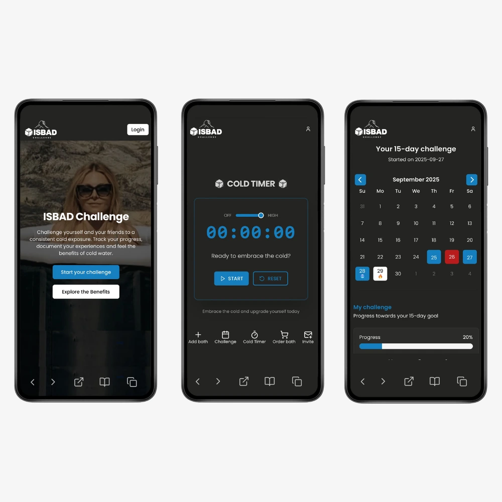 Med vår webapp kan du utmana vänner i isbad och följa varandras resa. Bjud in direkt, logga dina bad och se hur både du och dina vänner utvecklas över tid. Gå in på isbad.com, registrera dig och starta din egen rutin redan idag.